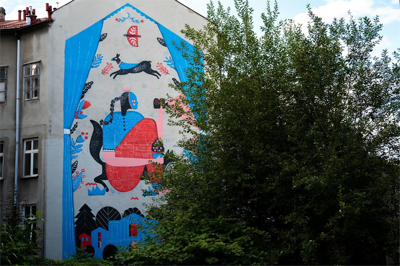 Alicja: Często sobie myślę o tym, że w codziennym pędzie najłatwiej gubimy uważność na to, co mamy tuż obok: na ludzi mieszkających za ścianą, na naturę, na historię kamienic, które mijamy, czy wreszcie na fakt, że nasze miasto od zawsze było splotem wielu różnych losów. Gubimy poczucie, że jesteśmy częścią czegoś większego i trwalszego. Marzy mi się, by w moich muralach przetrwało przekonanie, że współodczuwanie, szacunek do przyrody i zwykła, sąsiedzka otwartość to nie są zapomniane hasła, ale wartości, dzięki którym wszyscy i ludzie, i natura, możemy czuć się tutaj po prostu u siebie.