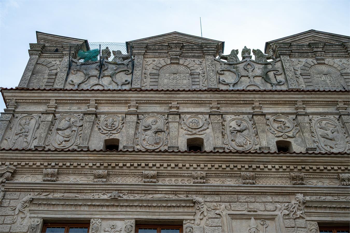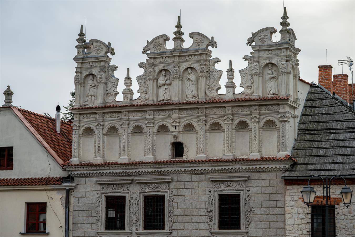 Schodzę na rynek i coś od razu nie pasuje. Kamienice Przybyłów, bogatych kupców, przyciągają wzrok. Ale gdy patrzę dłużej, proporcje zaczynają się rozjeżdżać. Postacie są jakby za ciężkie u góry, zbyt krótkie u dołu, detale lekko przesunięte. I właśnie to robi różnicę. To nie jest kopia włoskiego renesansu. To jego lokalna wersja, dopasowana do miejsca i możliwości. Tworzona przez rzemieślników, którzy nie próbowali być idealni, tylko skuteczni. Ten rynek nie powstał po to, żeby dobrze wyglądać. Powstał po to, żeby działać. Tu spotykali się kupcy, ustalano ceny, rozstrzygano spory. Podcienia chroniły towar i ludzi. W kamienicach mieszkano, handlowano i przechowywano zapasy. Każdy metr miał znaczenie. Bogactwo widać w detalach, ale jego źródło było gdzie indziej. W zbożu, które przechodziło przez ich ręce. W kontraktach. W decyzjach podejmowanych szybko, bo transport nie czekał. Patrzę na ten rynek i mam wrażenie, że jego siła nie leży w tym, jak wygląda. Leży w tym, jak dobrze był pomyślany. Na środku rynku stoi studnia. Dziś to punkt orientacyjny i tło do zdjęć, ale kiedyś była częścią codziennego życia. Woda była potrzebna wszystkim. Tu krzyżowały się drogi, rozmowy i informacje, które rozchodziły się szybciej niż transporty.